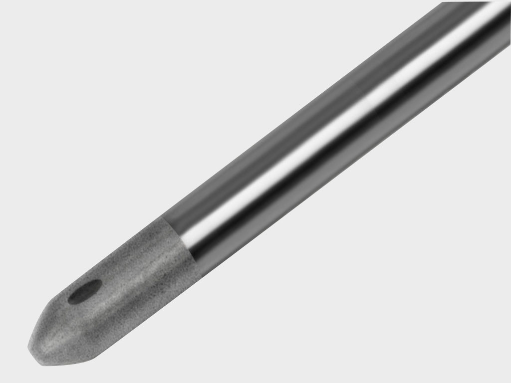 Aspirating handpiece, curved, ELLIPTICAL SECTION TIP, sandblasted tip, 28G top port, titanium handle