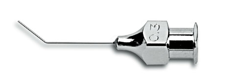 30 G anterior chamber air injection cannula, angled, 7 mm angle to tip, open end, L=20 mm