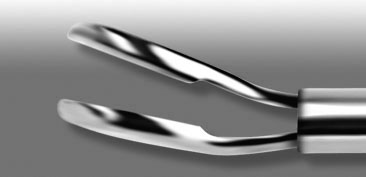 ICL™ loading coaxial forceps, atraumatic angled tips. TIPS OPENING PARALLEL TO THE CLOSING MECHANISM OF THE SQUEEZE HANDLE
