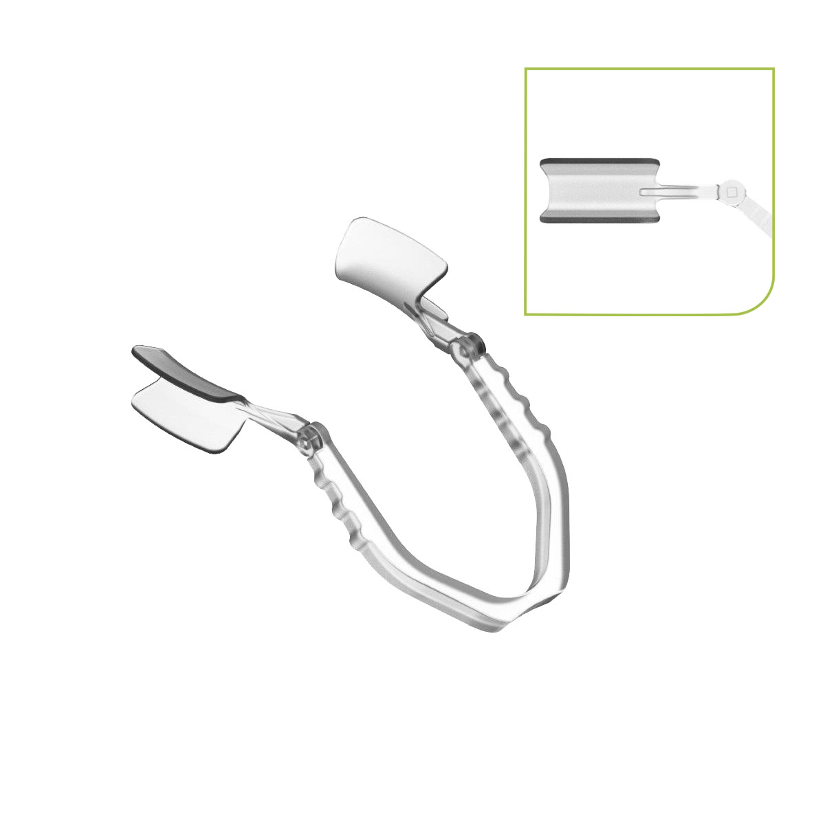 Reverse speculum, solid blade. Medical polymer. Latex-free