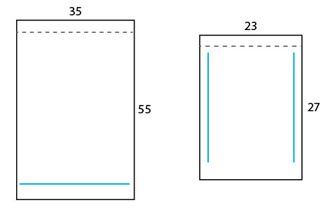 . Drape for surgical screen in transparent polythene, 35×55 cm, with adhesive edge for fixing and adaptable band