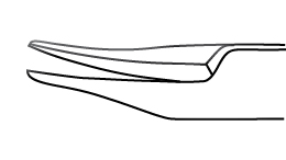 Stainless steel needle holder, curved, without lock, with delicate jaws, overall length: 103 mm. Recommended for 8-0 to 10-0 sutures
