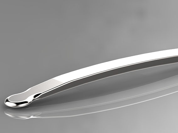Disk spatula for peripheral delamination of stromal residuals. Thin, semi sharp, allows proper preparation of the peripheral stroma layer