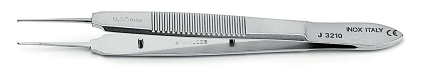 Suturing forceps, straight, 1×2 oblique 0.35 mm teeth, with tying platforms